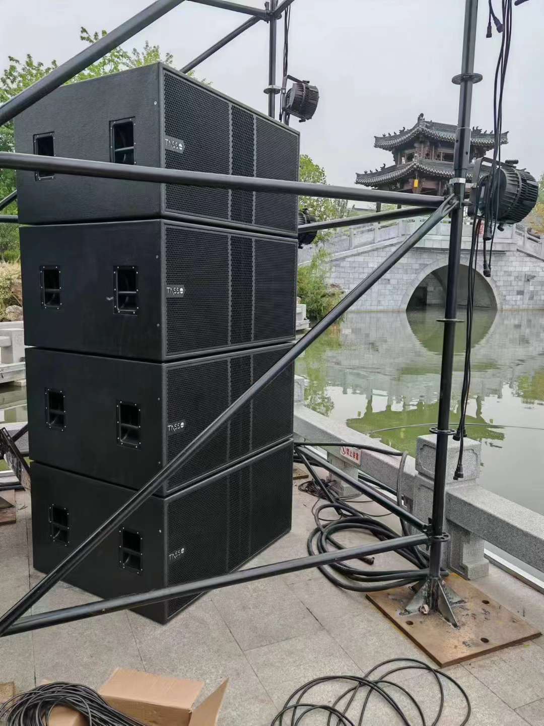 Para mejorar el ambiente festivo y el efecto emocionante de las actividades en el lugar, la dirección inspeccionó y escuchó productos de múltiples marcas de audio y presentó altos estándares y requisitos para el rendimiento del producto, el precio, la calidad y otros aspectos. Requiere tanto el nivel de presión sonora como la calidad estética del sonido, la capacidad de crear un efecto de concierto en un área escénica amplia, la suspensión de productos en todo tipo de clima, protección contra la lluvia y el sol y una larga distancia de transmisión del sonido, entre muchos otros requisitos. Después de múltiples comparaciones de marcas, finalmente elegimos la marca Tasso con 20 años de experiencia en investigación y producción.