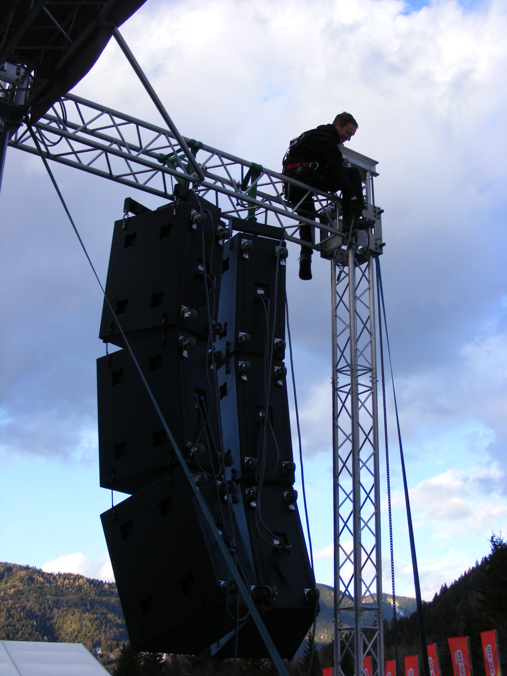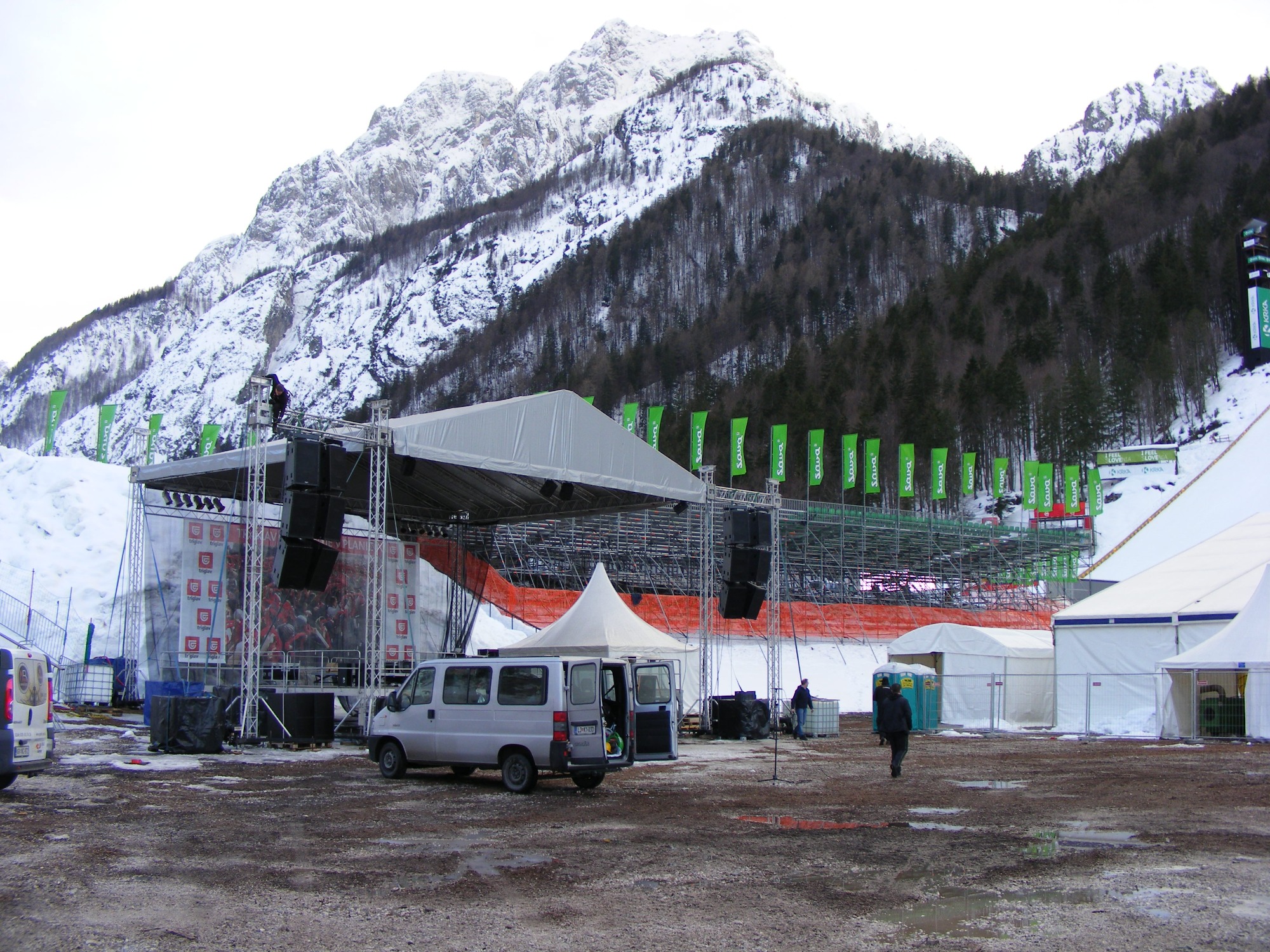 Saltos de esquí mundiales en Europa, Eslovenia, que utilizan el sistema Line Array de Tasso Audio al aire libre, con muy buena respuesta.