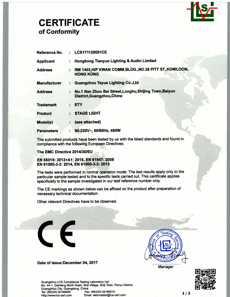 A continuación se muestran todos los certificados de iluminación de escenario.
