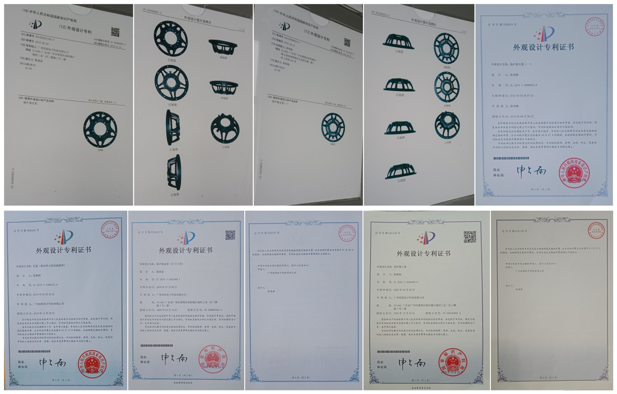 A continuación se muestran los certificados de calidad y patentes de los altavoces sueltos.