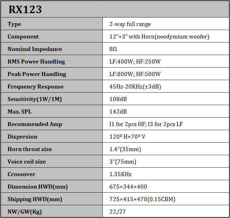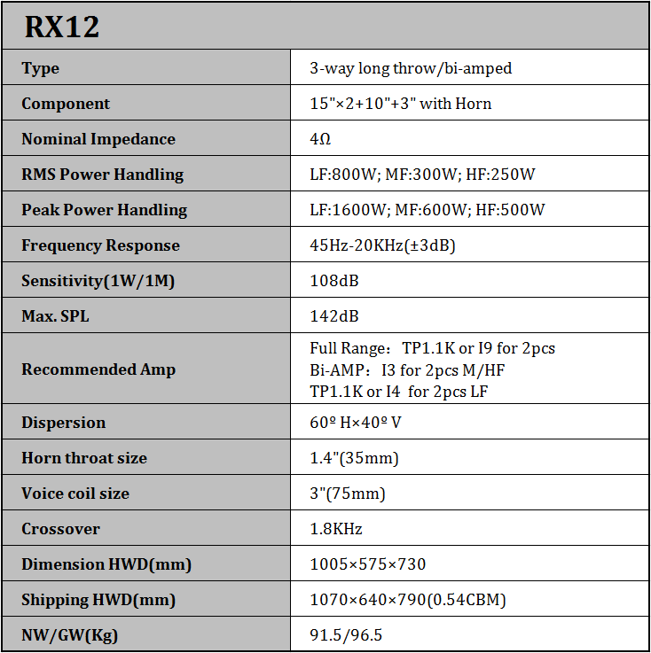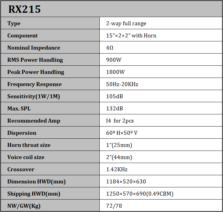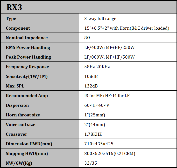 La serie RX tiene una excelente respuesta de frecuencia suave, gran dinámica y ancho de banda, alta salida SPL. Estas claras manifestaciones sonoras la convierten en la mejor opción para muchos lugares.