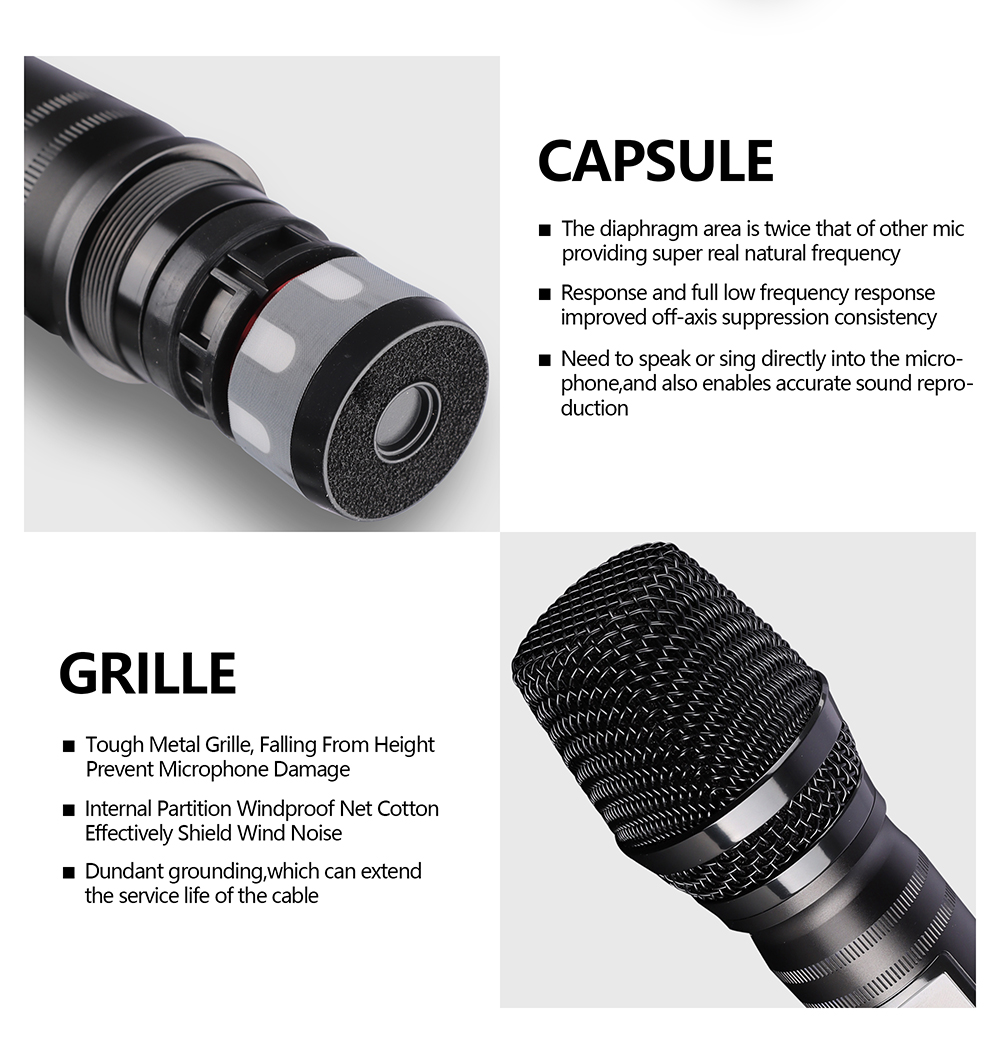 【Materiales sólidos y duraderos】- Los micrófonos metálicos de aluminio con rejillas de malla de acero son particularmente resistentes al impacto y la corrosión. El receptor metálico cuenta con cuatro perillas de control de volumen independientes, que le permiten ajustar el volumen de cada micrófono inalámbrico según sea necesario.