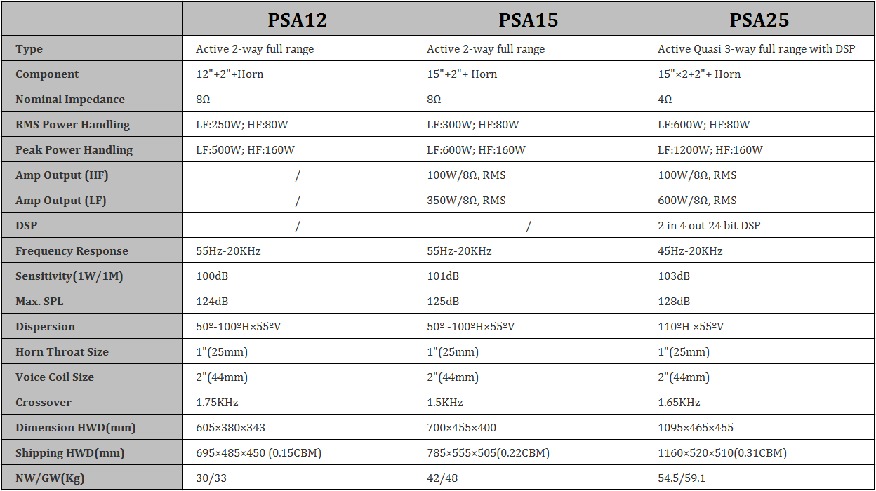 Altavoz activo autoamplificado de 15 pulgadas de la serie PSA 12