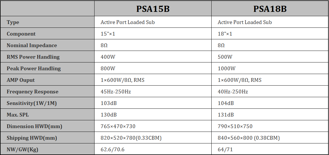 Serie 15 de subwoofers PSA Altavoz activo autoamplificado de 18 pulgadas