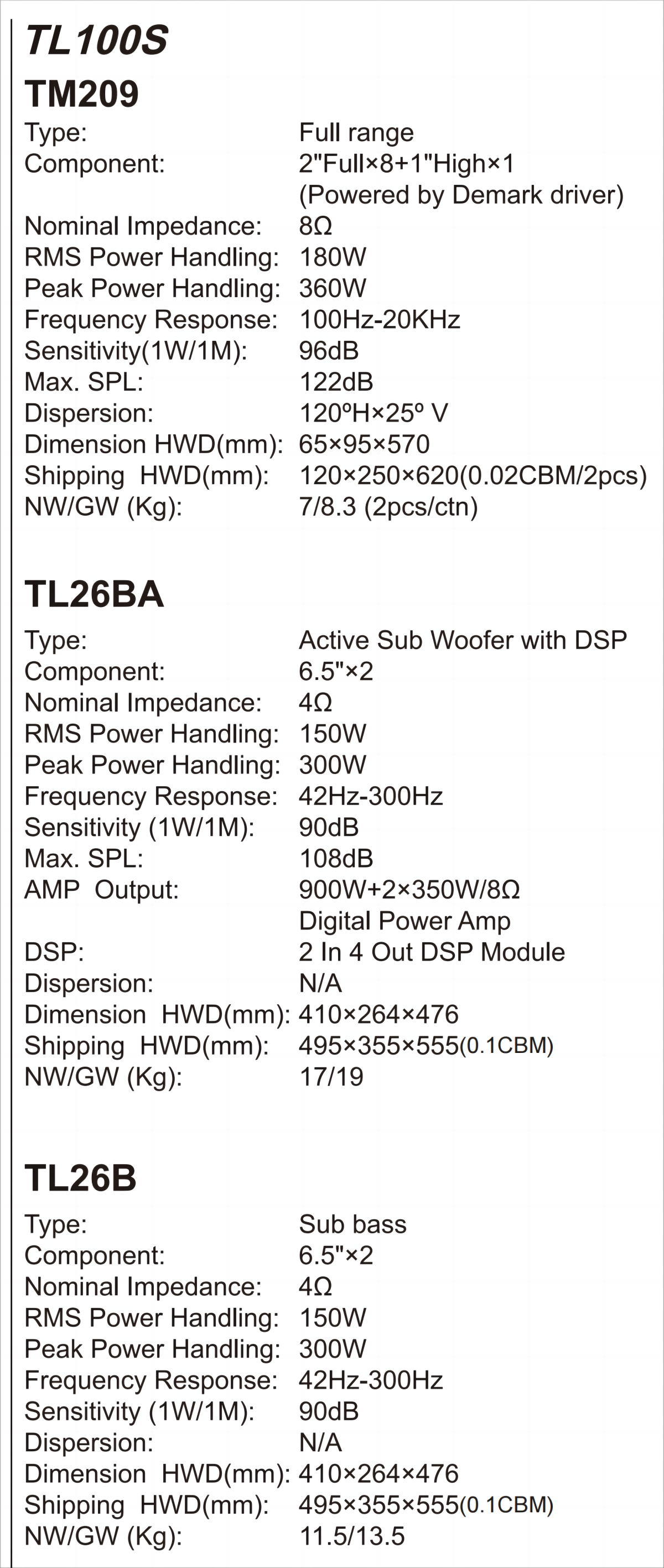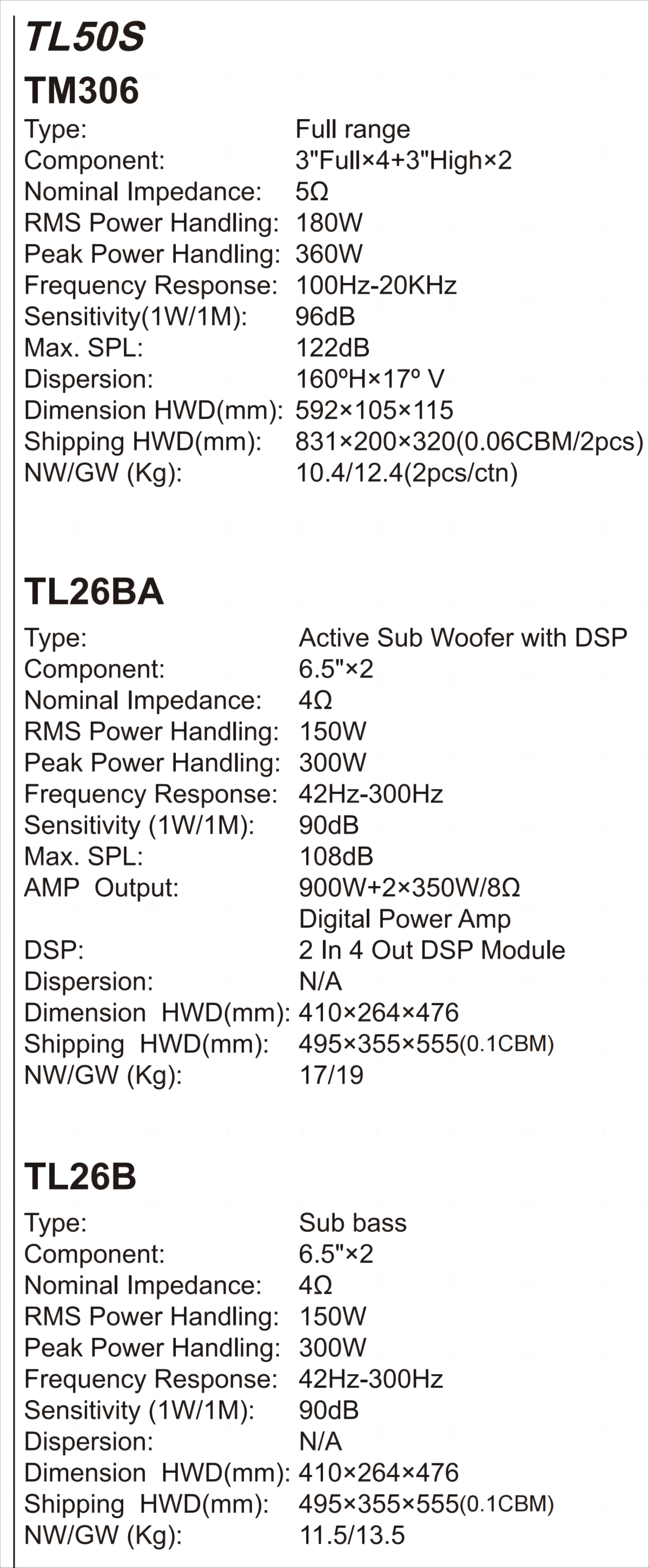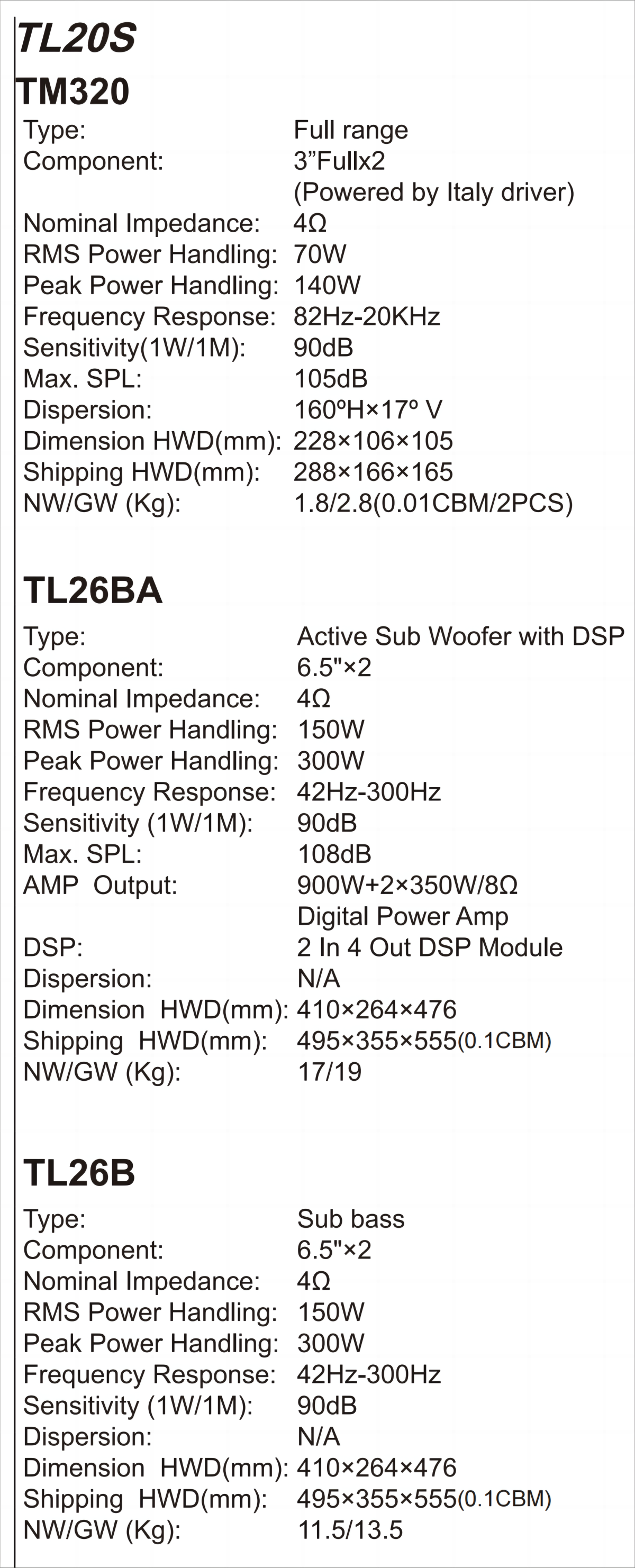 No.TL20S/50S/100S/200S/300S/400S/500S/600S