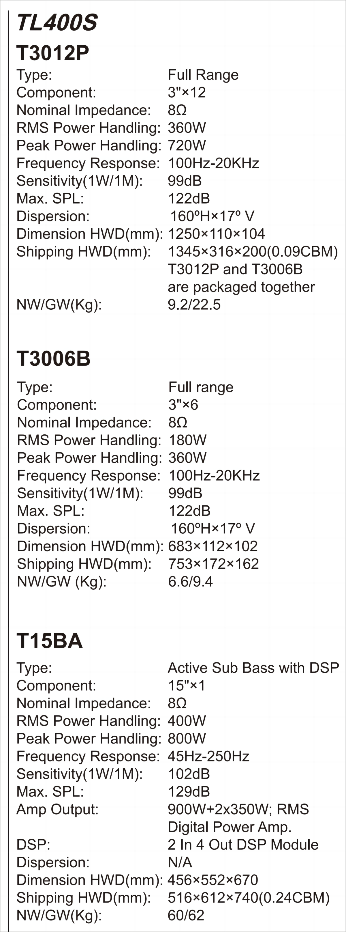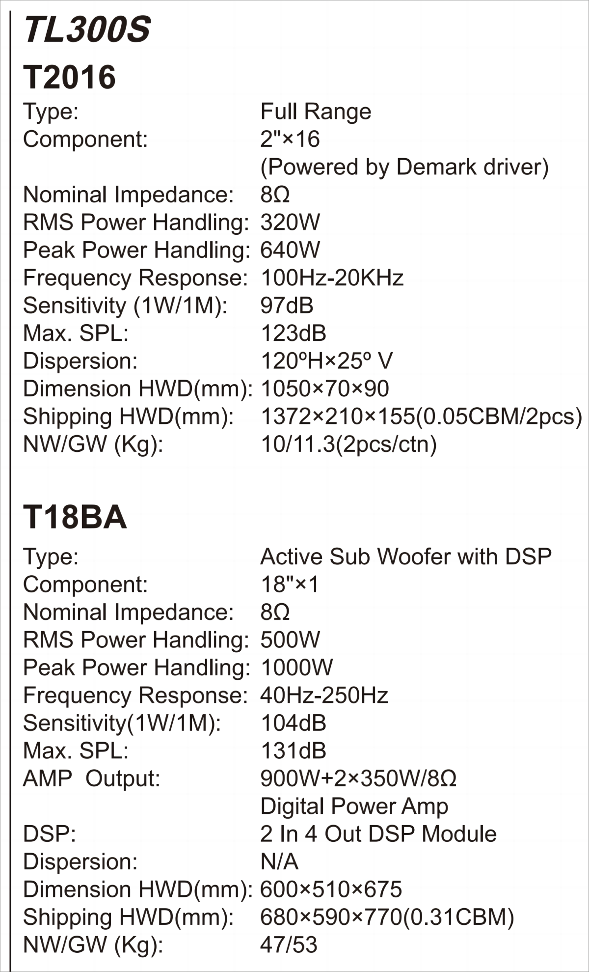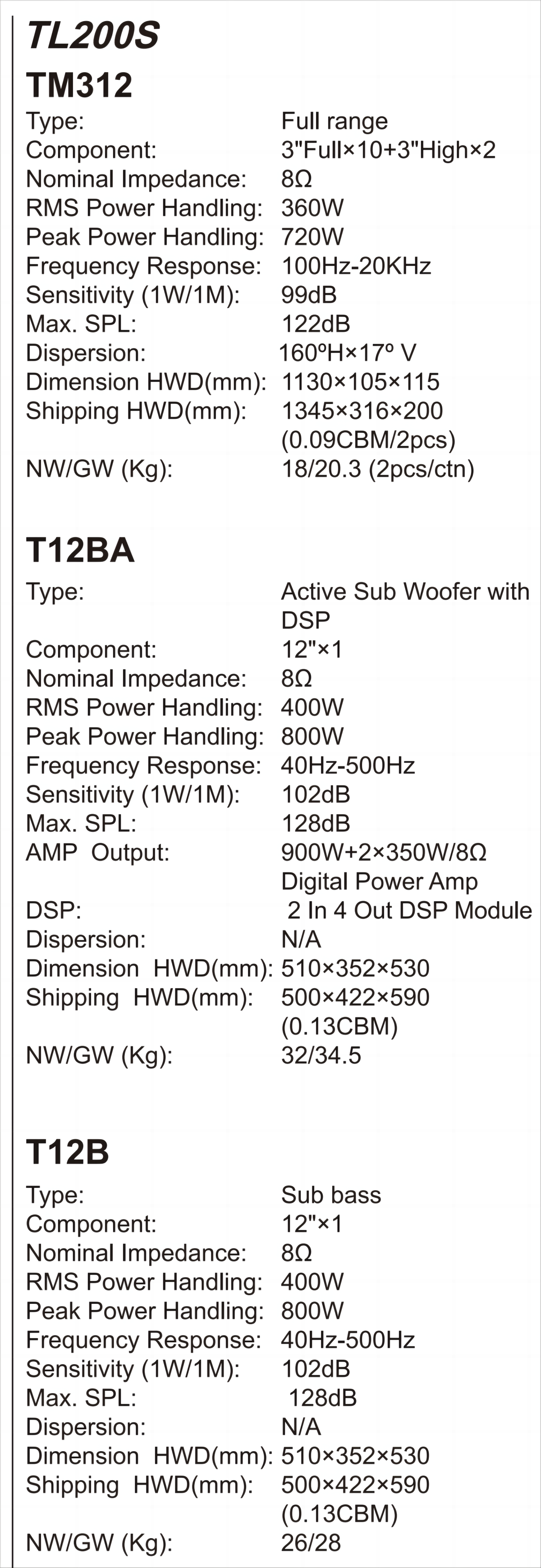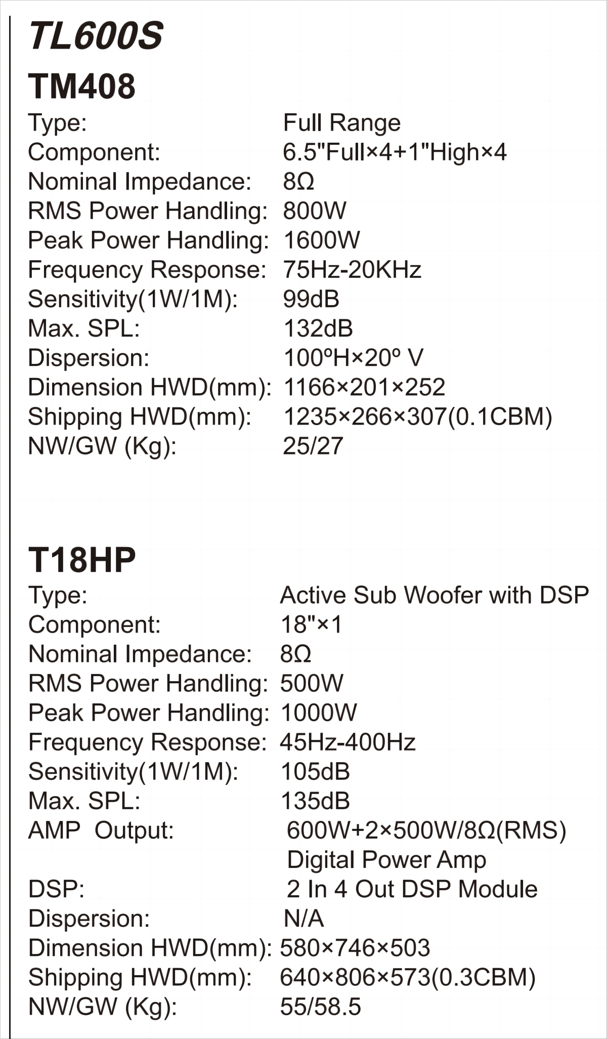 No.TL20S/50S/100S/200S/300S/400S/500S/600S