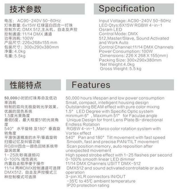 Mini luz de cabeza móvil B-Eye Beam ETY-136 de 6 x 15 W
