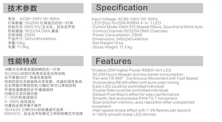 ETY-138 Haz de bola mágica LED RGBW de 10 x 20 W