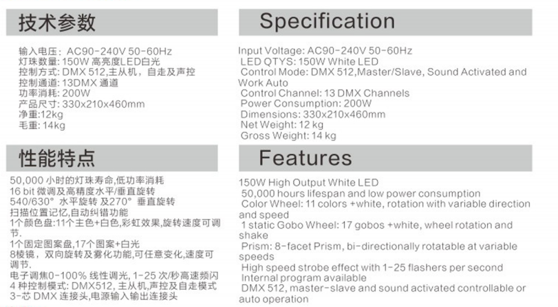 Luz LED de cabeza móvil ETY-150 de 150 W