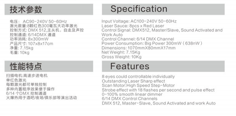 ETY-152 Barra de luz láser móvil RGB roja de 8 ojos