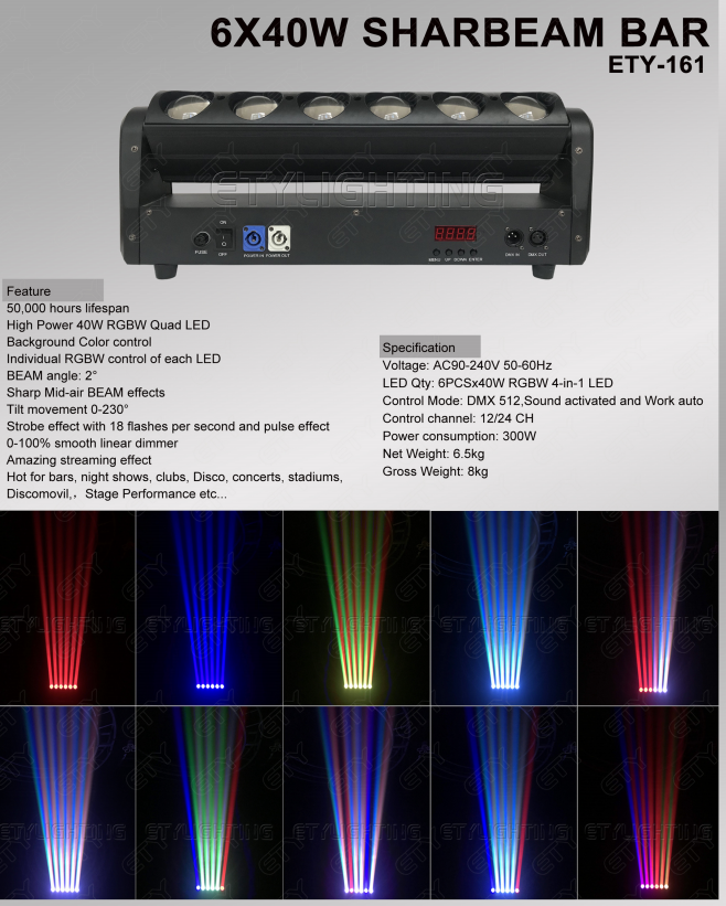 Barra de luz SharBeam ETY-161 de 6 x 40 W
