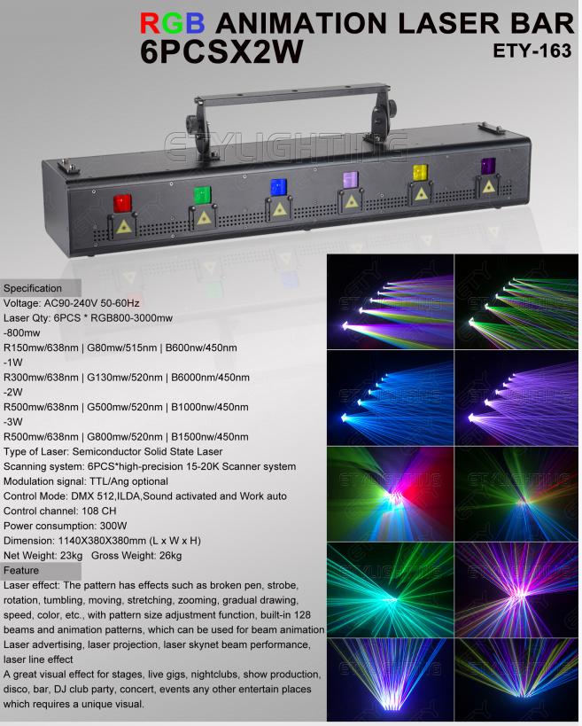 Barra láser de animación RGB ETY-163, 6 unidades x 2 W