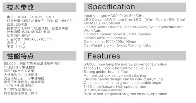 Barra de luz con haz de puntos de píxeles ETY-311 de 14 x 3 W