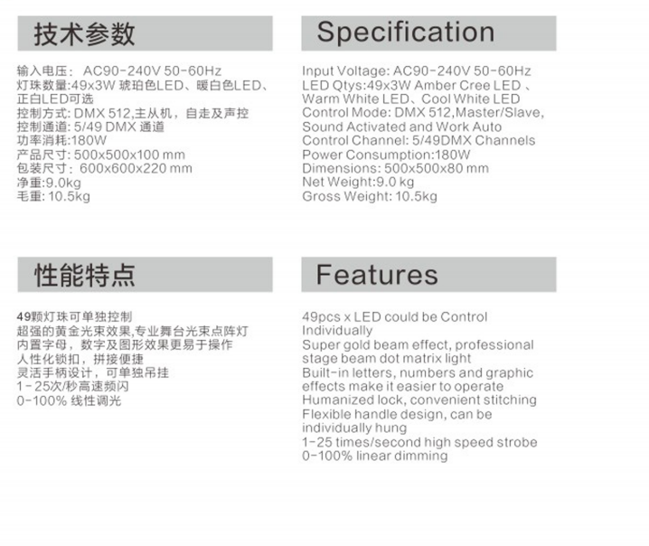 ETY-312 Luz matricial LED dorada de 7 x 7 pulgadas
