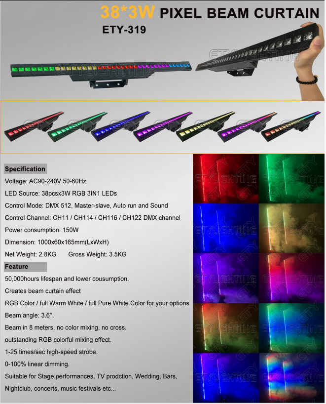 ETY-319 CORTINA DE HAZ DE PÍXELES DE 38 X 3 W
