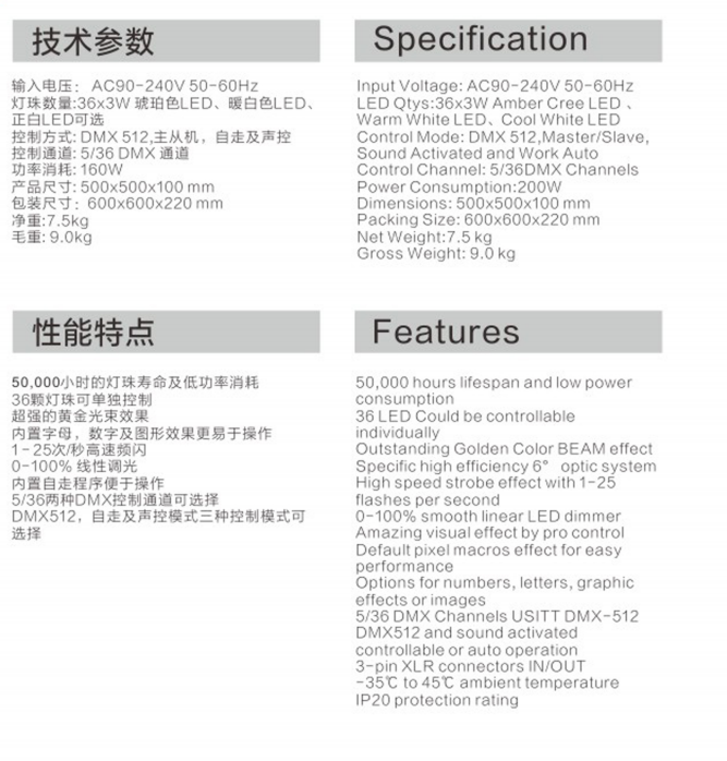 ETY-411 Luz matricial LED dorada de 6 x 6 pulgadas