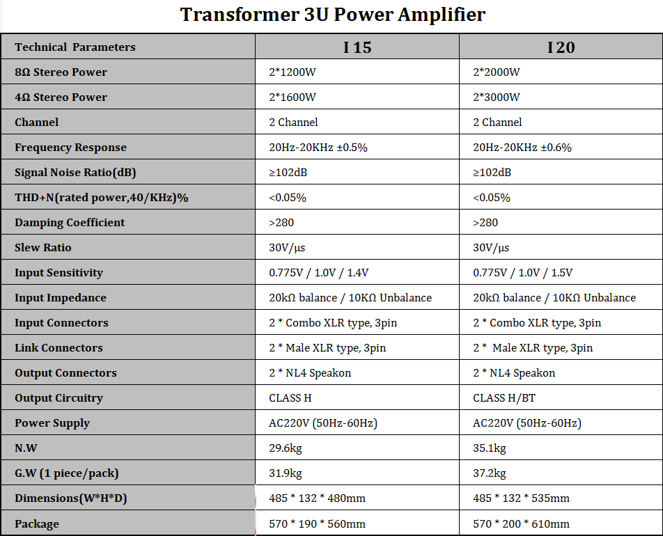 Amplificador de potencia 3U con transformador serie I