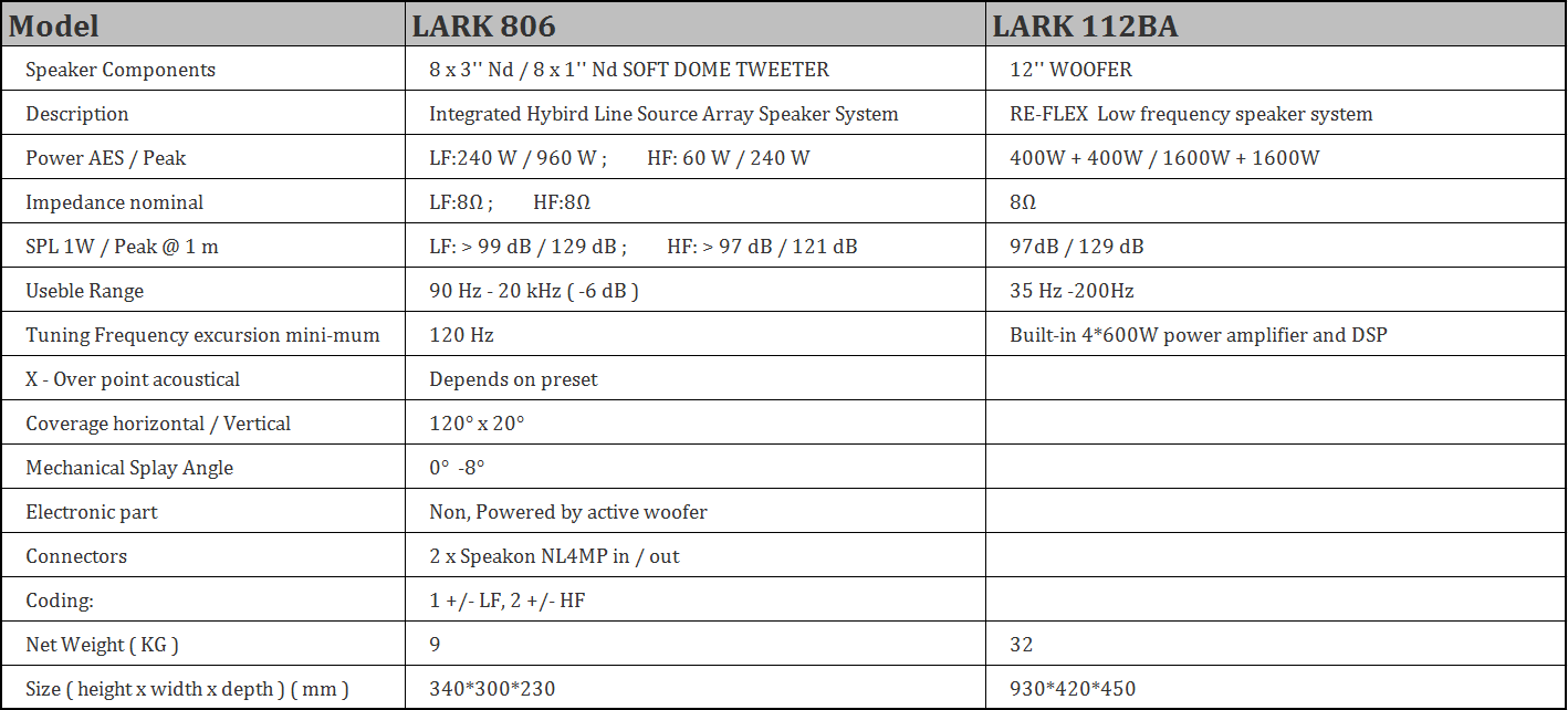 Lark Compact adecuado para uso móvil, los altavoces de baja frecuencia Lark 112BA tienen un diseño de almacenamiento único, almacenamiento y transporte se pueden combinar con Lark 806 en su conjunto, lo que ahorra mucho espacio de transporte y almacenamiento.