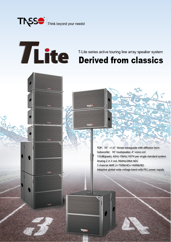 T-Lite es un sistema de audio de alto rendimiento lanzado por Tasso Audio en 2021. Desde el lanzamiento del producto de referencia de la industria T2 en 2010, Tasso ha acumulado una gran experiencia en la integración de altavoces activos de alta potencia y tecnologías centrales. Tasso tiene más experiencia en la producción de altavoces activos y los nuevos productos lanzados también son más sorprendentes.