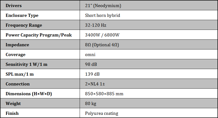 Un solo subgrave de 21 pulgadas, que puede ser activo, será el LB21P con 1700 vatios RMS