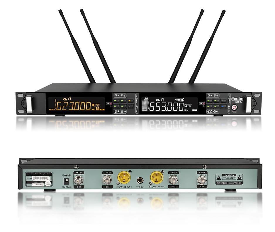El sistema de micrófono inalámbrico de actuación profesional zyg - 25 es un sistema de micrófono inalámbrico adecuado para el canto escénico profesional, que utiliza una serie de diseños de alta tecnología líderes en la industria en uno: transmisión de Sección de ultra alta frecuencia (uhf), recepción realmente dividida, control de doble cpu, pantalla lcd, carcasa metálica, tecnología de anillo de fase de bloqueo pll, detección de ruido, etc., con las ventajas de 160 puntos de frecuencia ajustables y operación conveniente. Adopta el control de la CPU del microcomputador: todo el circuito de hardware del sistema está controlado por el microcomputador, que puede realizar la selección de frecuencia, visualización, bloqueo silencioso, monitoreo de la capacidad de la batería y otros procesos, logrando diversas funciones que los modelos tradicionales son difíciles de lograr. Pantalla lcd: se muestra con una pantalla LCD de alto rendimiento, y todos los menús de control se pueden mostrar en la pantalla LCD para facilitar el control del sistema.
